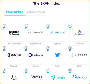 从六大指数榜单来看,在iOS端:Tik Tok For Business 登顶 SKAN 指数实力榜;苹果ASA凭仗先天数据拜访优势,成新晋留存和IAP冠军;IAA指数中,AppLovin从之前的第三升至榜首;Android端,Google仍然是装置王者;Facebook称雄IAP和再营销;IAA指数中,仍然由Unity拔得头筹;增加指数增速最快的媒体途径则是Adjoe。