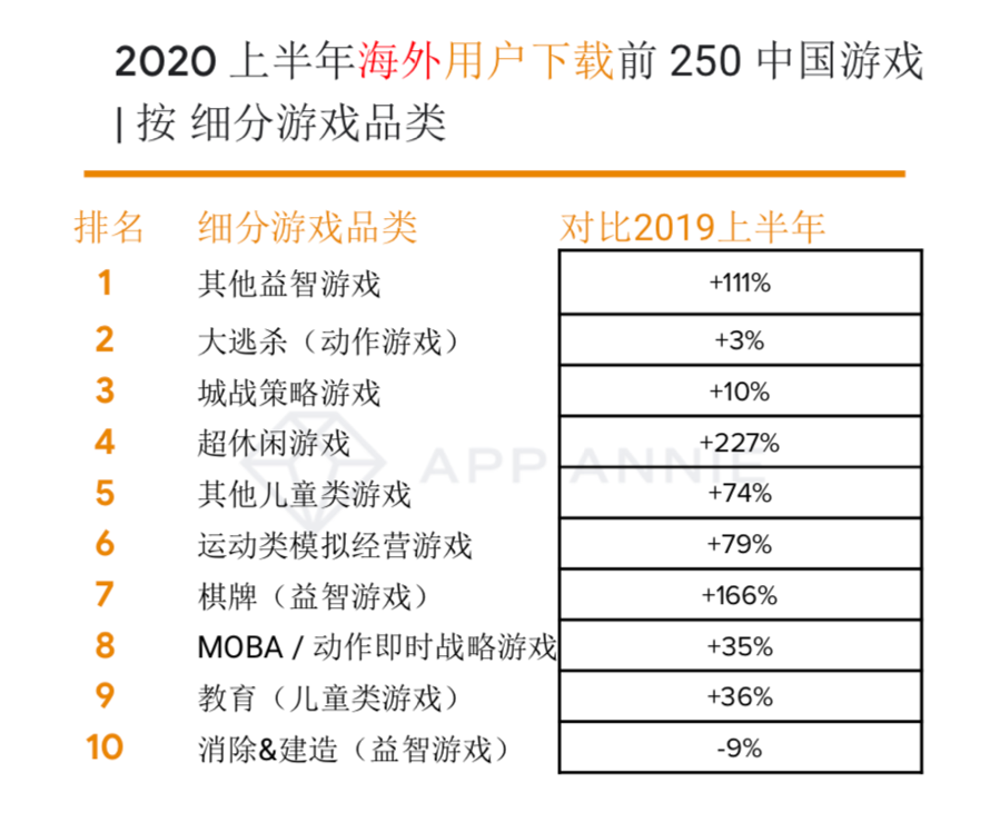 此外,戴彬也坦言:“尽管App Annie本身每个月都有在发布我国出海游戏营收前30的榜单(包含公司、发行商和游戏),可是咱们一向没有做细分类别的,由于商铺的细分类别并不是很明晰,不同游戏对本身界说的分类往往也十分杂乱,所以做出一个明晰明晰的出海分类表单是一件很难的工作。
