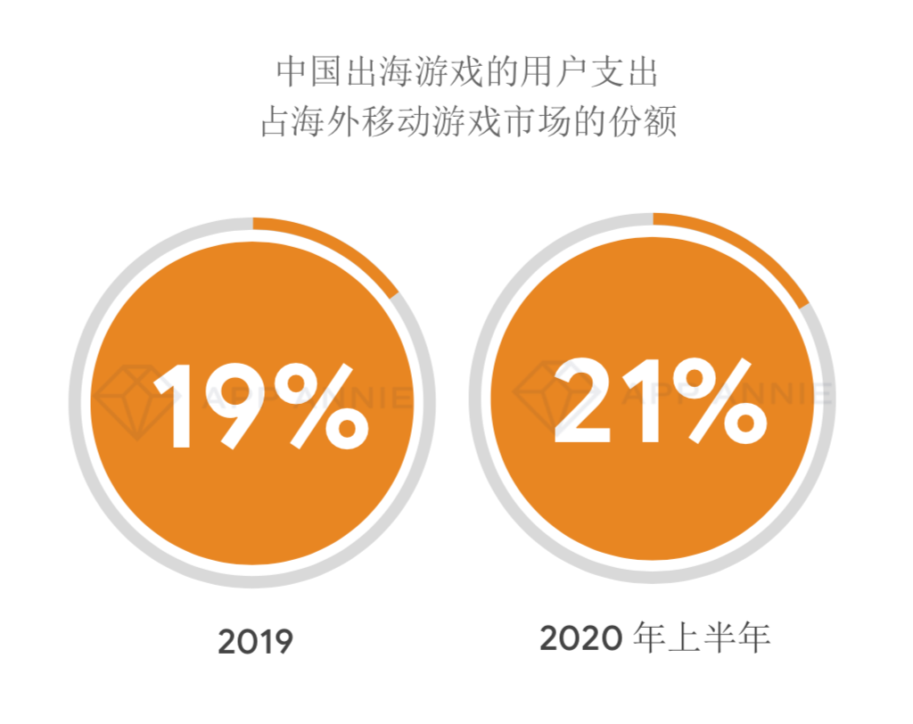 微观视点上来看,根据App Annie数据显现,曩昔三年间,我国大陆地区的出海移动游戏继续生长,运用时长和用户开销方面增加水平高于其他地区发行商,并且在本年上半年别离达到了61%和37%的HoH(半年对半年)强势增速。而从海外商场竞赛格式的视点来看,我国厂商所占的份额也从2019年的19%增加到21%,占有超越海外商场的1/5份额。