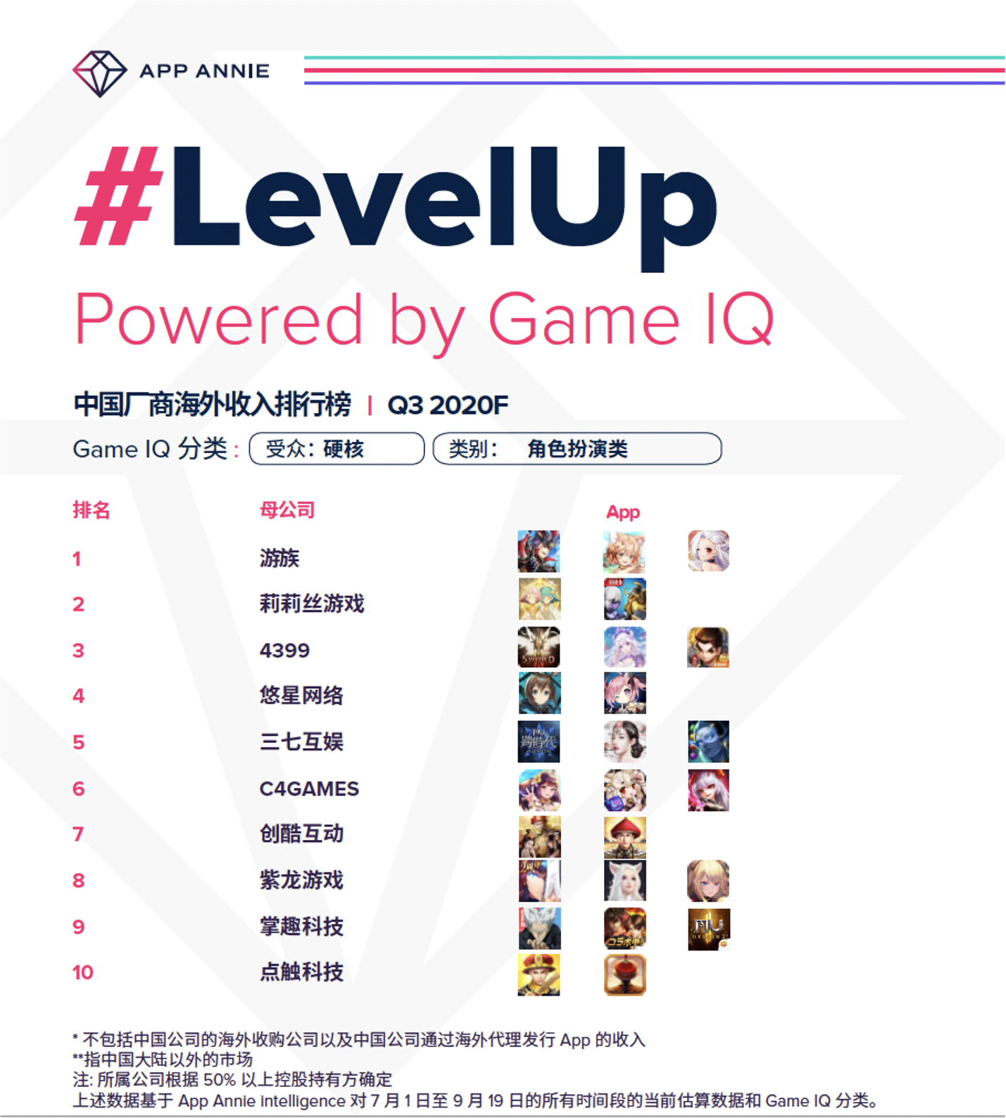 近来,移动数据和剖析公司App Annie联合Google、AppsFlyer发布了《2020我国移动游戏出海驱动力陈述》,并在线上发布会上结合其最新推出的游戏分类东西产品Game IQ,针对上半年以来的全球手游商场进行了系统性的剖析回忆。App Annie大中华区负责人戴彬及App Annie大中华南区新事务的负责人Vanessa一起到会了本次线上发布会,从当下出海移动游戏企业的现状及趋势、细分品类中的新机会、以及游戏增加战略等多个方面进行了共享和讨论。