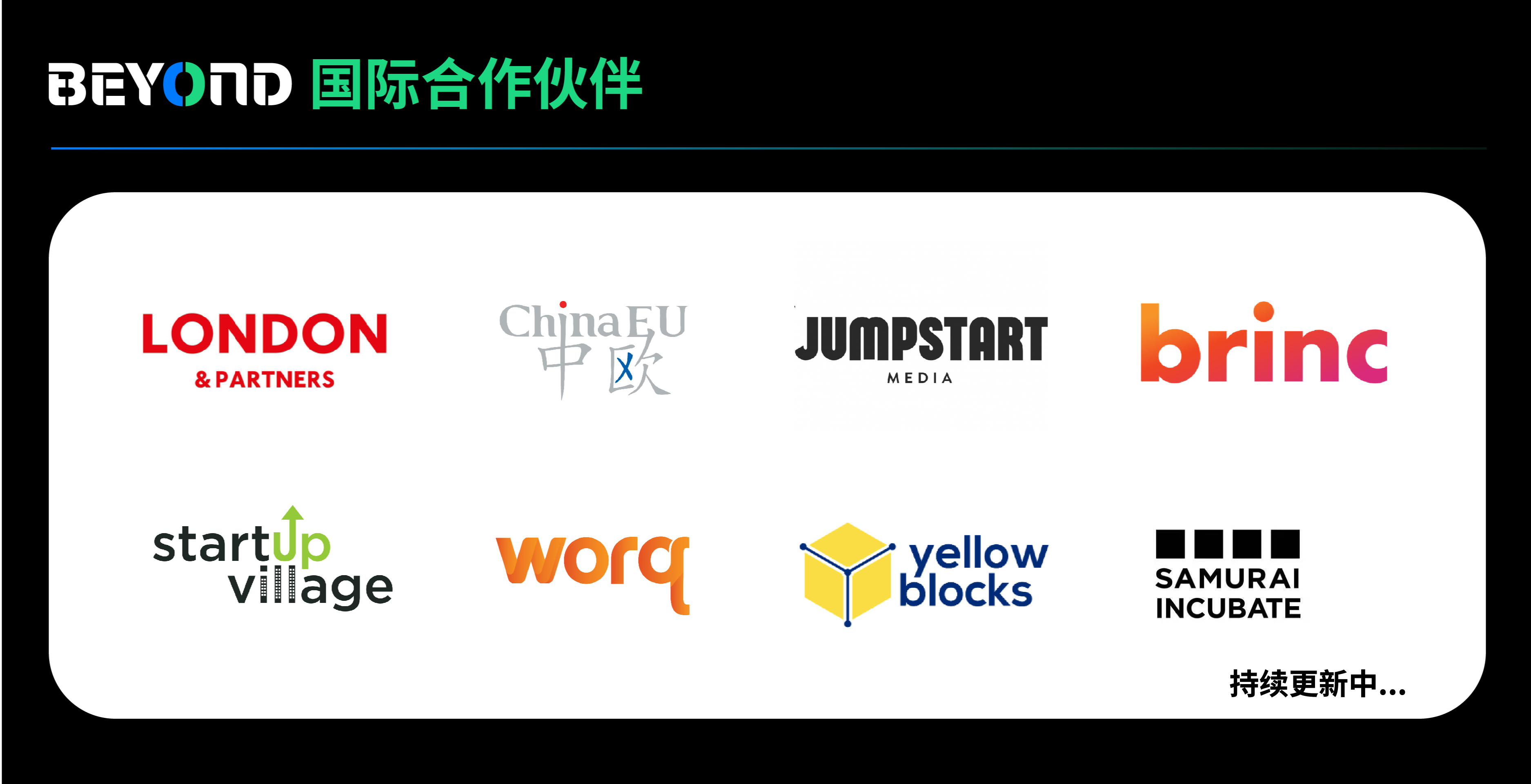 澳门作为亚太重要的世界沟通协作的链接点,并具一起的开放性,BEYOND EXPO力求在澳门出现一场后疫情年代极具世界化的工业立异盛会,现在,已招引了来自全球30多个国家的协作伙伴,联手打造美国、英国、日本、法国、新加坡、以色列等国家分论坛,约请本地闻名职业人士共享和评论本地的科技开展趋势和世界协作的机会。一起,从全球视界动身,BEYOND Virtual也会推出一系列线上职业论坛,针对全球和区域性的一些热门科技论题打开深化评论,其论题掩盖农业科技,全球电商,绿色科技,电子竞技,才智城市等等,充分发挥协作伙伴在当地和拿手范畴的优势和资源,一起促进BEYOND 全方位的打造世界化的科技立异交融互动渠道,推进亚太地区和全球的科技立异职业开展。现在承认的协作伙伴有:London & Partners伦敦开展促进署,BRINC,ChinaEU,Jumpstart Media,WORQ,Startup Village,Yellowblocks,SAMURAI INCUBATE,更多协作伙伴将连续揭晓。